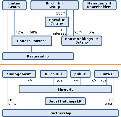 Boost Holdings LP and the Cintas Group hold class A and class B common units of the Partnership, representing the Birch Hill Group's approximate 58% interest in the Partnership and the Cintas Group's approximate 42% interest in the Partnership. The common shares of the General Partner are currently owned by the Birch Hill Group (58%) and the Cintas Group (42%). In connection with the Offering. Shred-it will acquire all of the common shares of the General Partner.